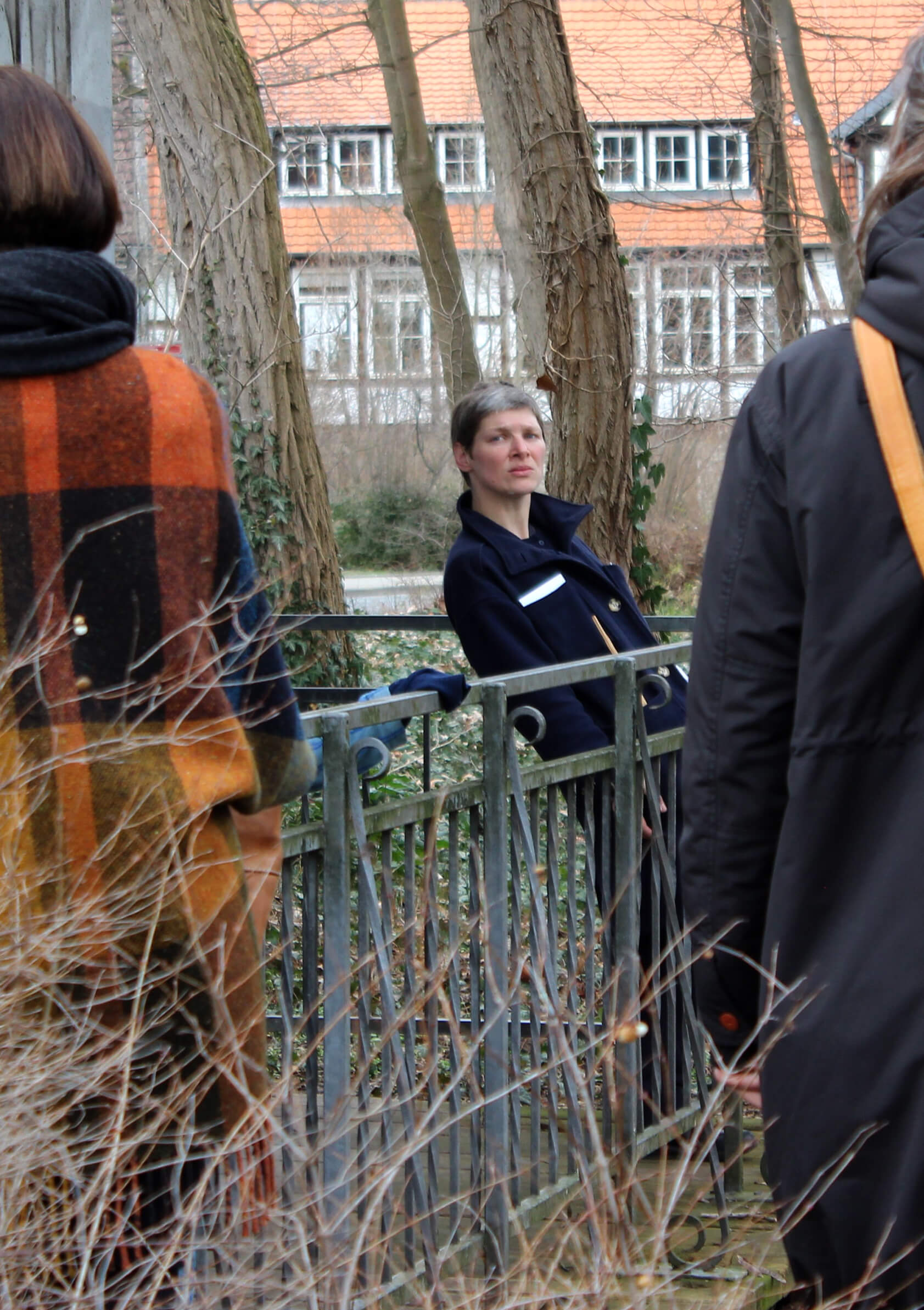 Anlässlich der 14. Fachtagung „Experiment Wissen – Wissenstransfer in der Kulturellen Bildung“, die in der Bundesakademie Wolfenbüttel stattfand, führte Aichinger die Teilnehmer*innen durch einen Teil der Stadt und regte an, den Blick auf Gewohntes zu verändern. In Workshop-Sequenzen vermittelte sie Methoden des Erzählens, verknüpfte Realität und Fiktion und lud ein, Raum körperlich und akustisch neu zu betrachten. Anhand der partizipatorischen Führung stellte sie auch hier die Frage, wer ist „Autor*in“ unseres Wissens? Und, schreibt sich „erlebtes“ Wissen intensiver ein, als rein veräußertes?