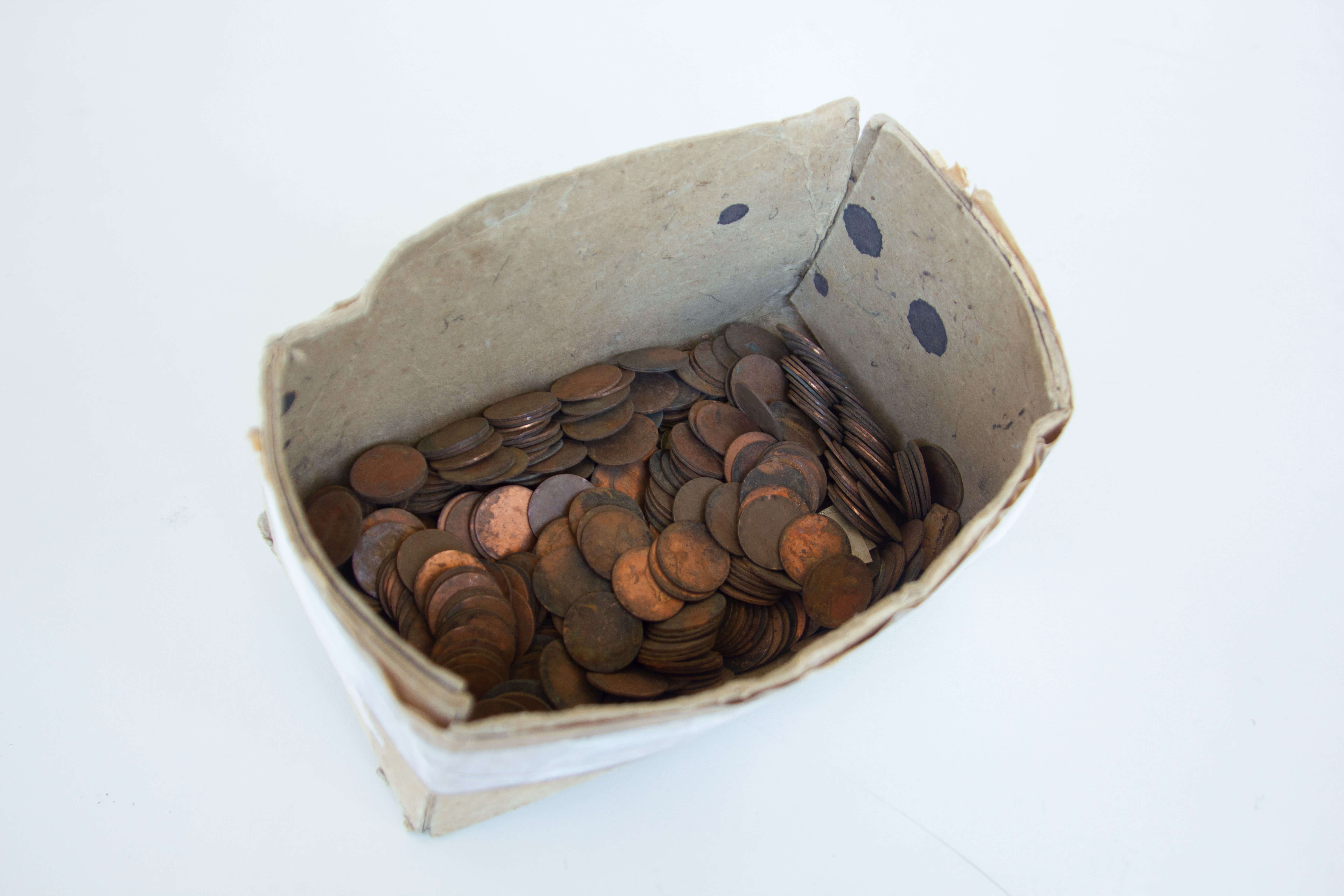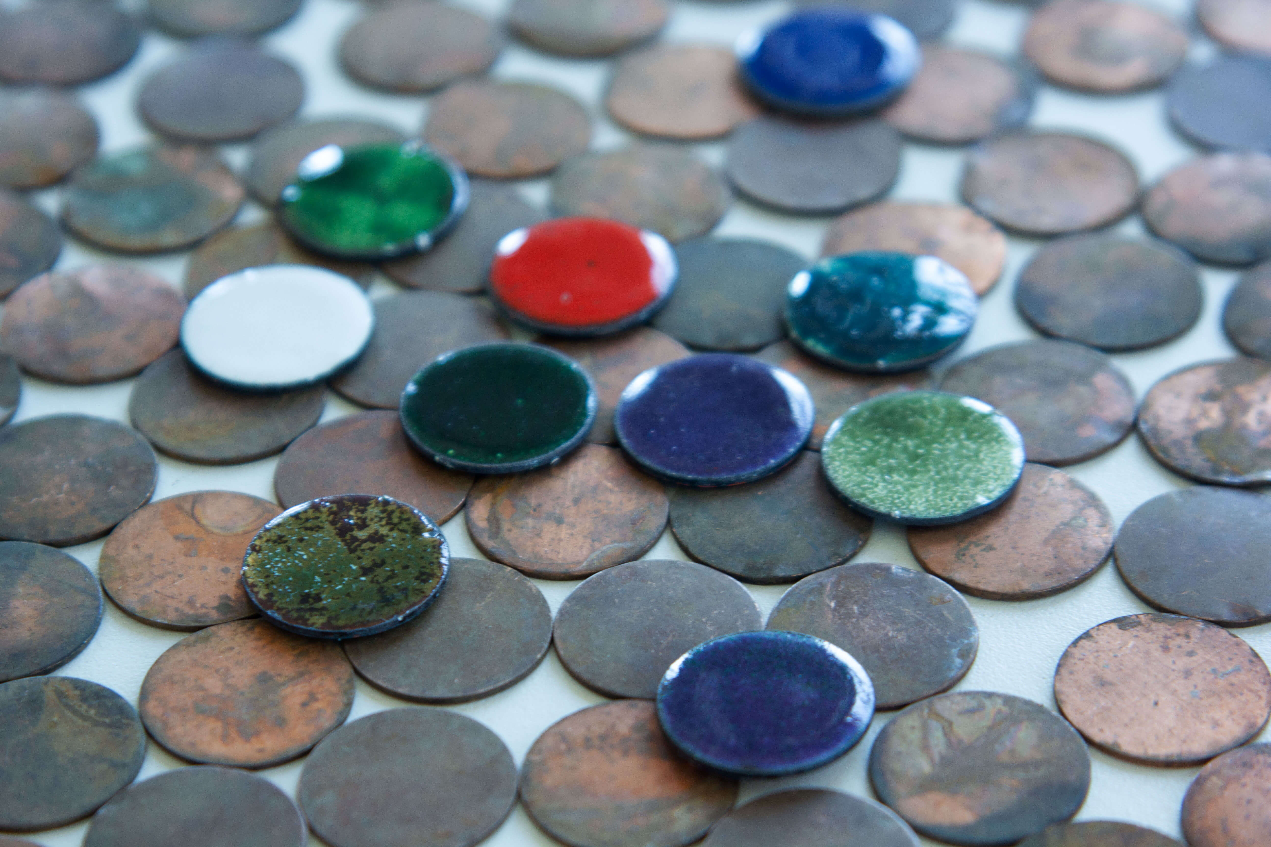 Kupfermünzen (Fundstücke), beidseitig emailliert