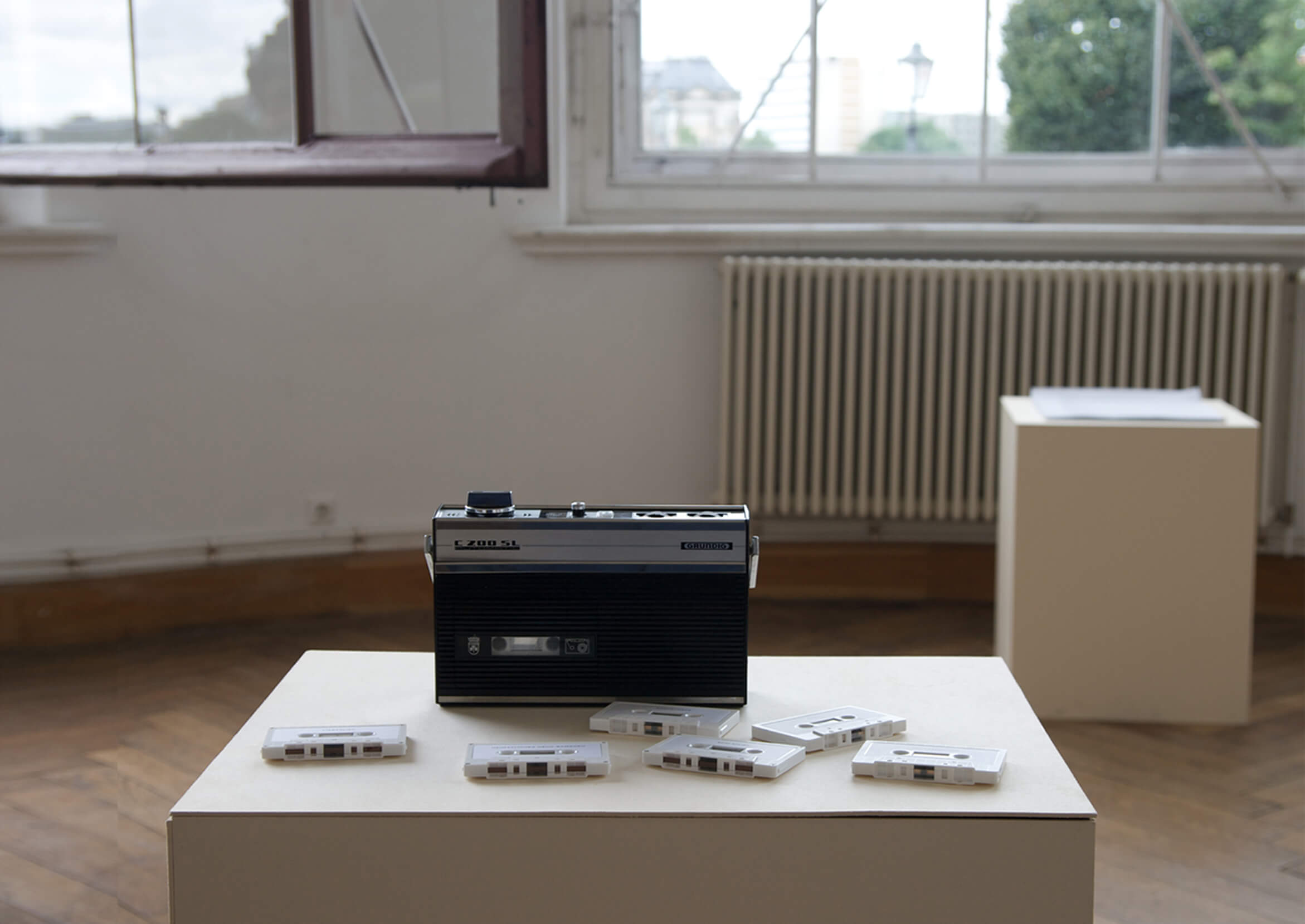 Ein transportabler Kassettenrekorder und 7 Musikkassetten stehen zur Benutzung frei. Die Besucher wählen zwischen: Liebeslied, Schlaflied, heimatliches Heho-Bambdeo, Zeit, Moritat, Popsong oder Bonustrack.