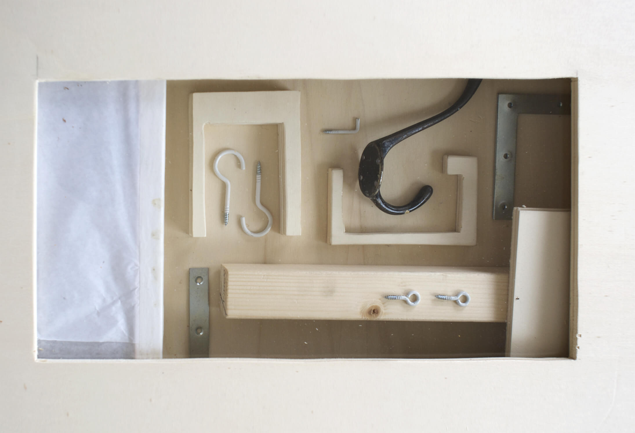 Holz, Papier, Leinen, DB-Wand-Aschenbecher, diverse Eisenhaken, Glas