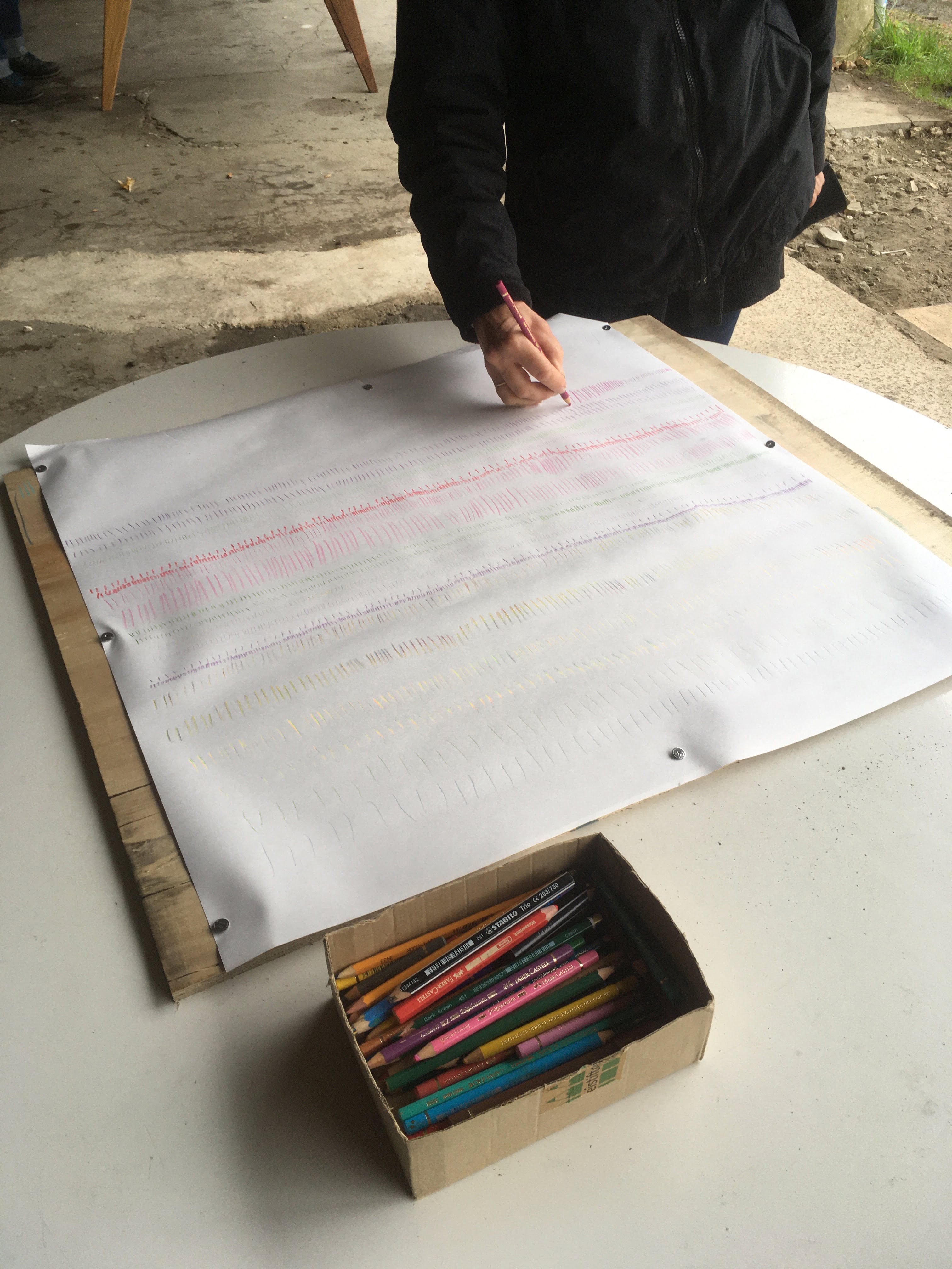 Gemeinsam untersuchten wir, Zeichnende unterschiedlicher Herkunft, wie Bewegung, körperlicher Zustand und Umgebung das Zeichnen beeinflussen. Und umgekehrt. "Do it again" war ein experimenteller Workshop, in welchem ich mein performatives und zeichnerisches Wissen teilte und verwob. Über das Erleben kamen die Teilnehmer*innen zu neuen Herangehensweisen und Ideen im Bezug auf ihre persönliche Geschichte mit der Zeichnung und ihrem künstlerischen Ausdruck.